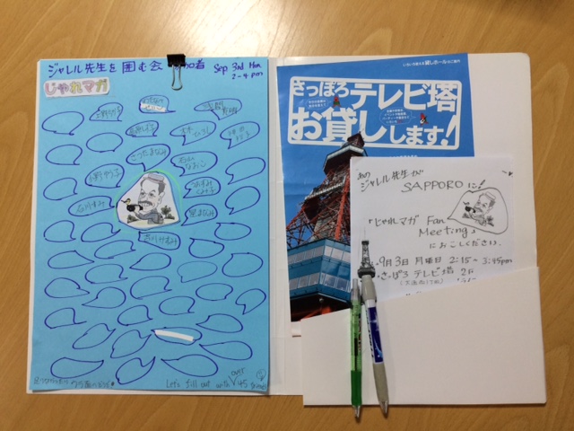 先生、ご紹介ありがとうございました。ジャレル先生から「札幌に行きます」とメールがきたときには本当に驚きました。どこか札幌のシンボルのようなところで、「囲む会」が出来たらいいな、って思いました。皆さんにこのようなメッセージも来ています。沢山お寄せください♪ ’ I would like to find out more about everyone and how you use Jaremaga as a study (or teaching) tool. I’d be happy to hear if you have any new ideas or suggestions for Jaremaga.’
