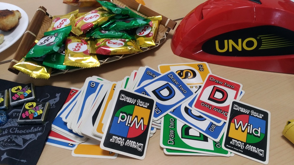 誰よりも参加したかったY子さんは残念ながらお仕事でこれませんでしたが・・・若いころオーストラリアでUNOにハマって友人たちと遊びまくりました。その後結婚してMrs. UNOになってみんながびっくりしたとか。。